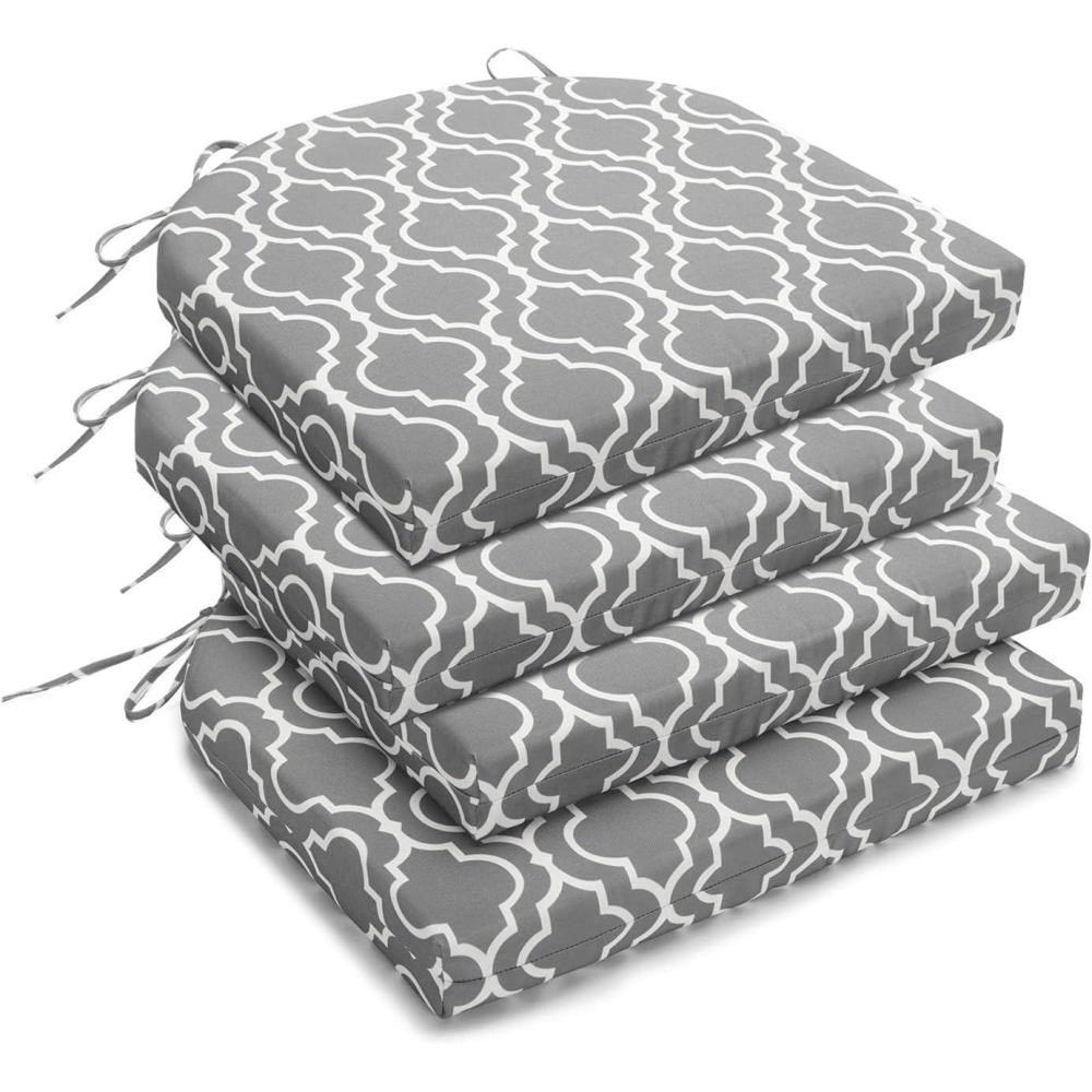 imagedownluxe Outdoor Chair Cushions Set of 4 for Patio Furniture WaterResistant Square Corner Patio Chair Cushions with Ties High Density Foam Outdoor Seat Cushion 185quot X 16quot X 3quot BlackGrey Gourd