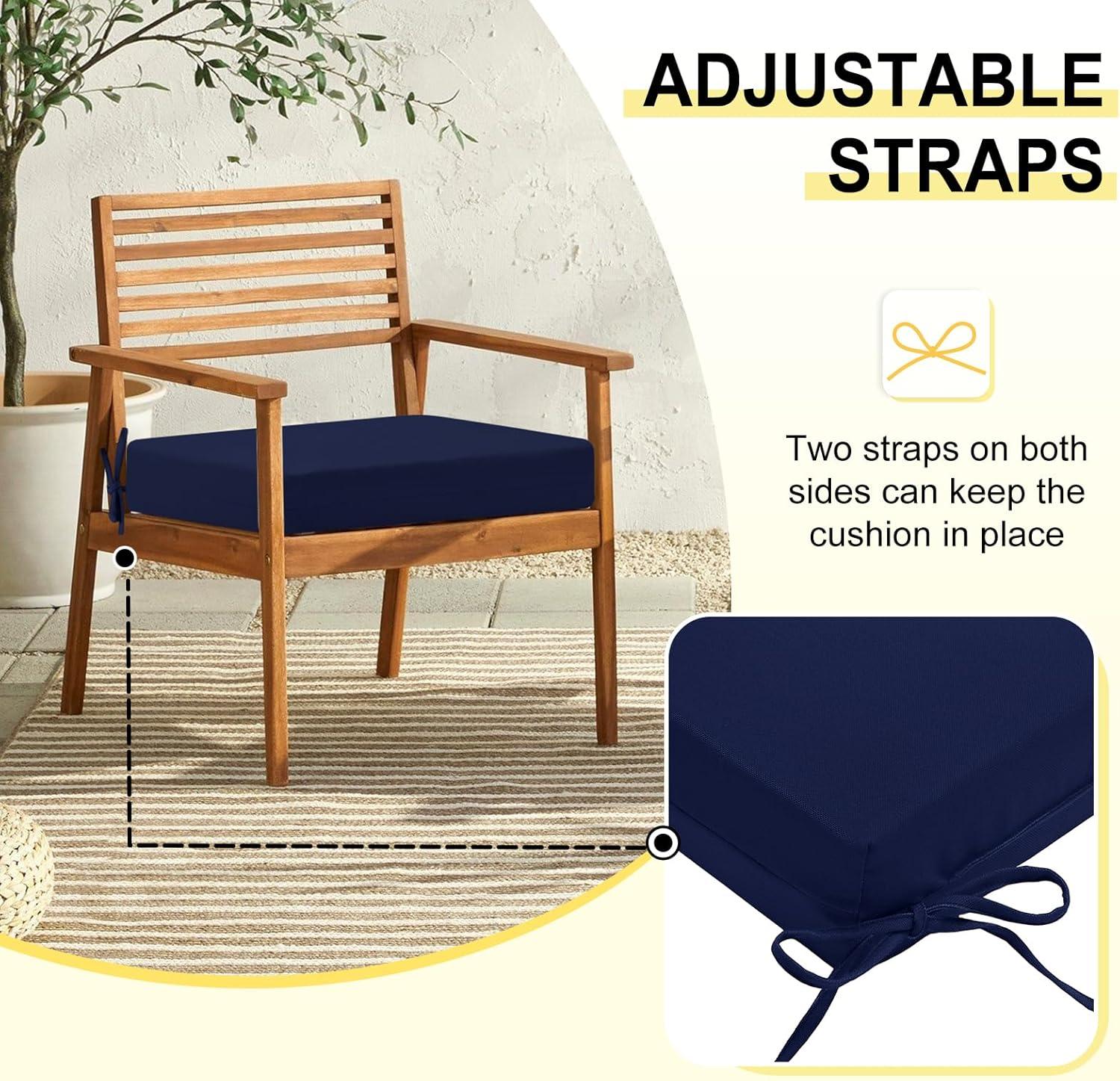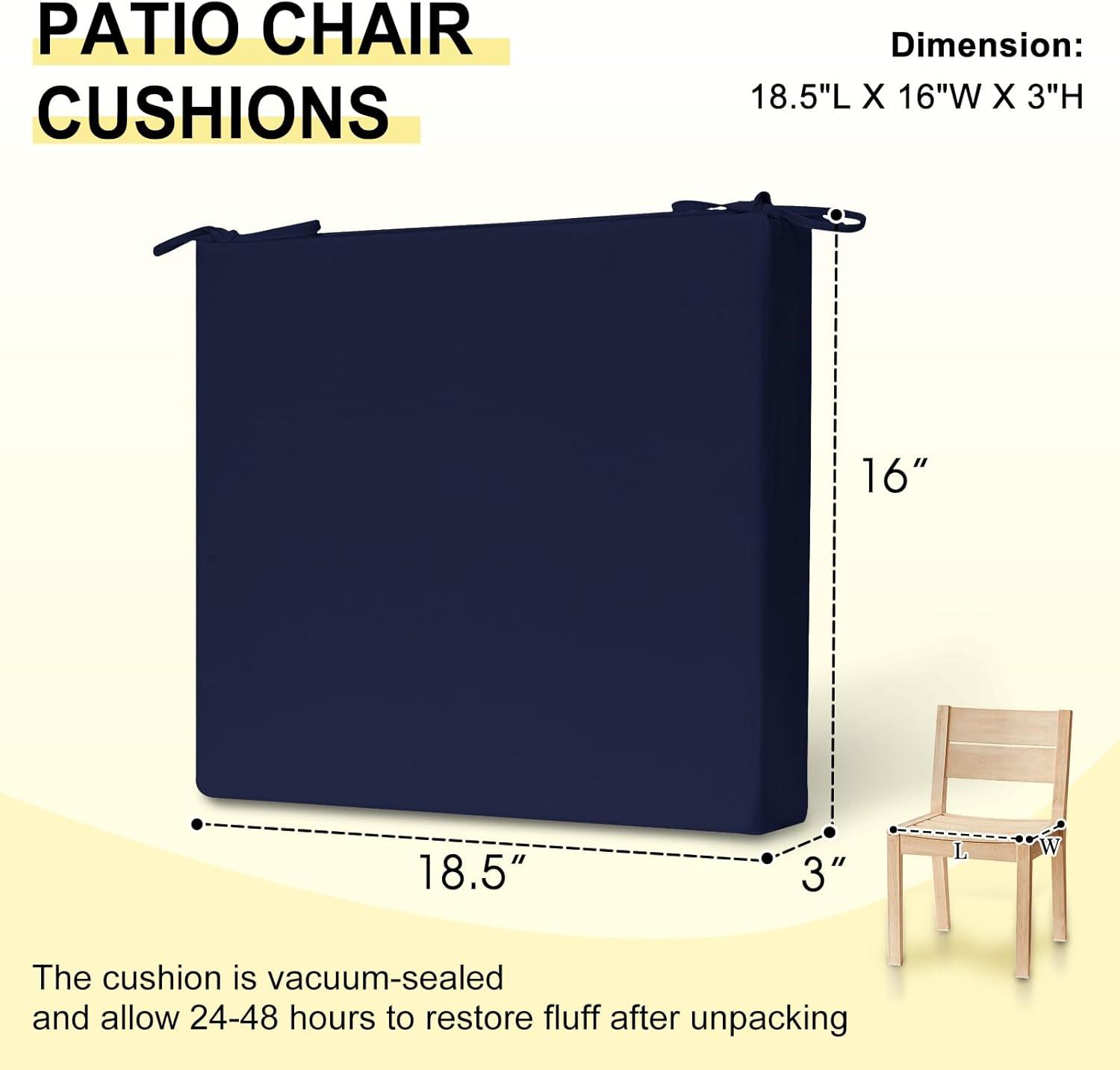 downluxe Outdoor Chair Cushions Set of 4 for Patio Furniture, Water-Resistant Square Corner Patio Chair Cushions with Ties, High Density Foam Outdoor Seat Cushion, 18.5" X 16" X 3", Black(Navy)
