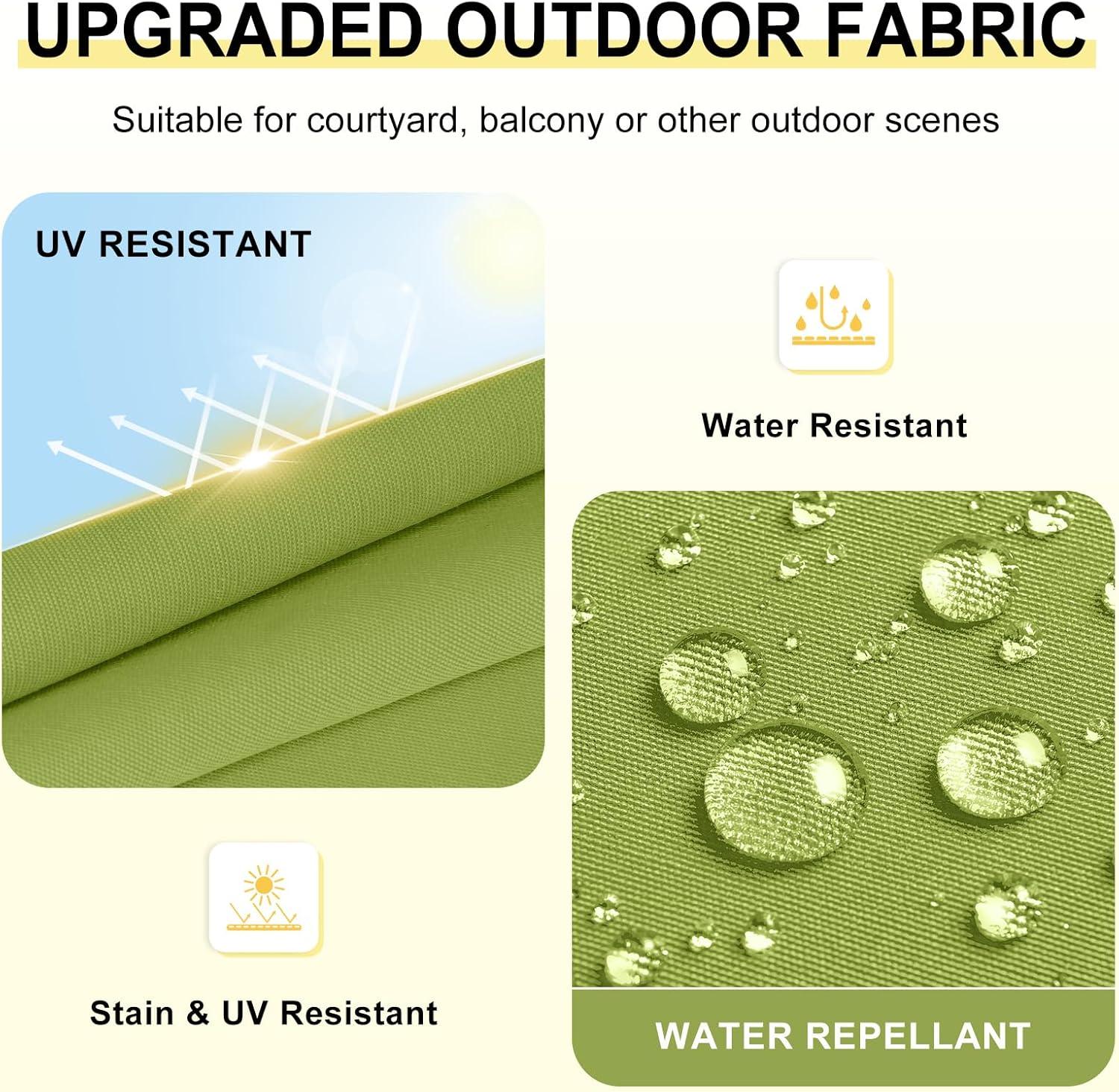 Premium Fabric: Outdoor cushions are made of polyester fabric which is water, stain and UV resistant. The fabric can withstand daily wear and tear, but it is recommended to bring them indoors when raining to preserve lifespan and maintain appearance