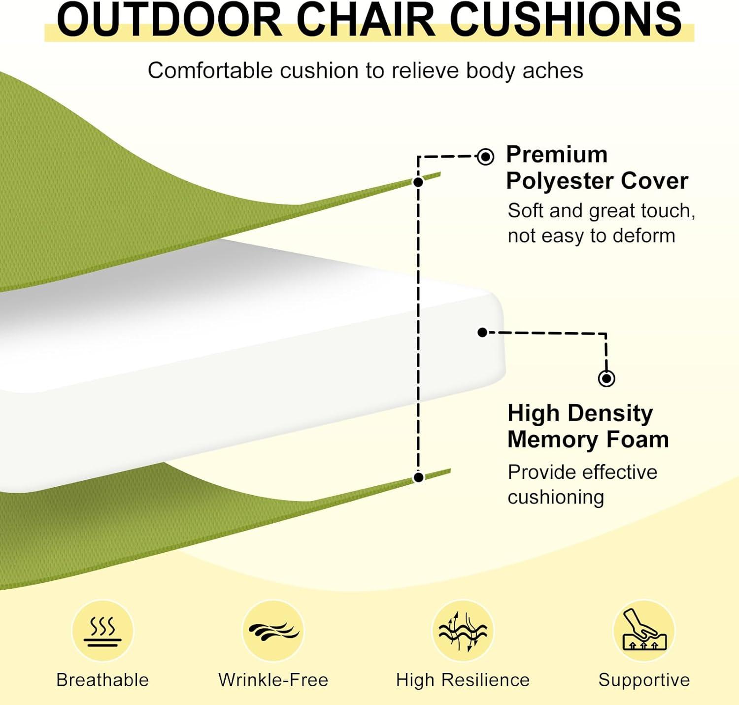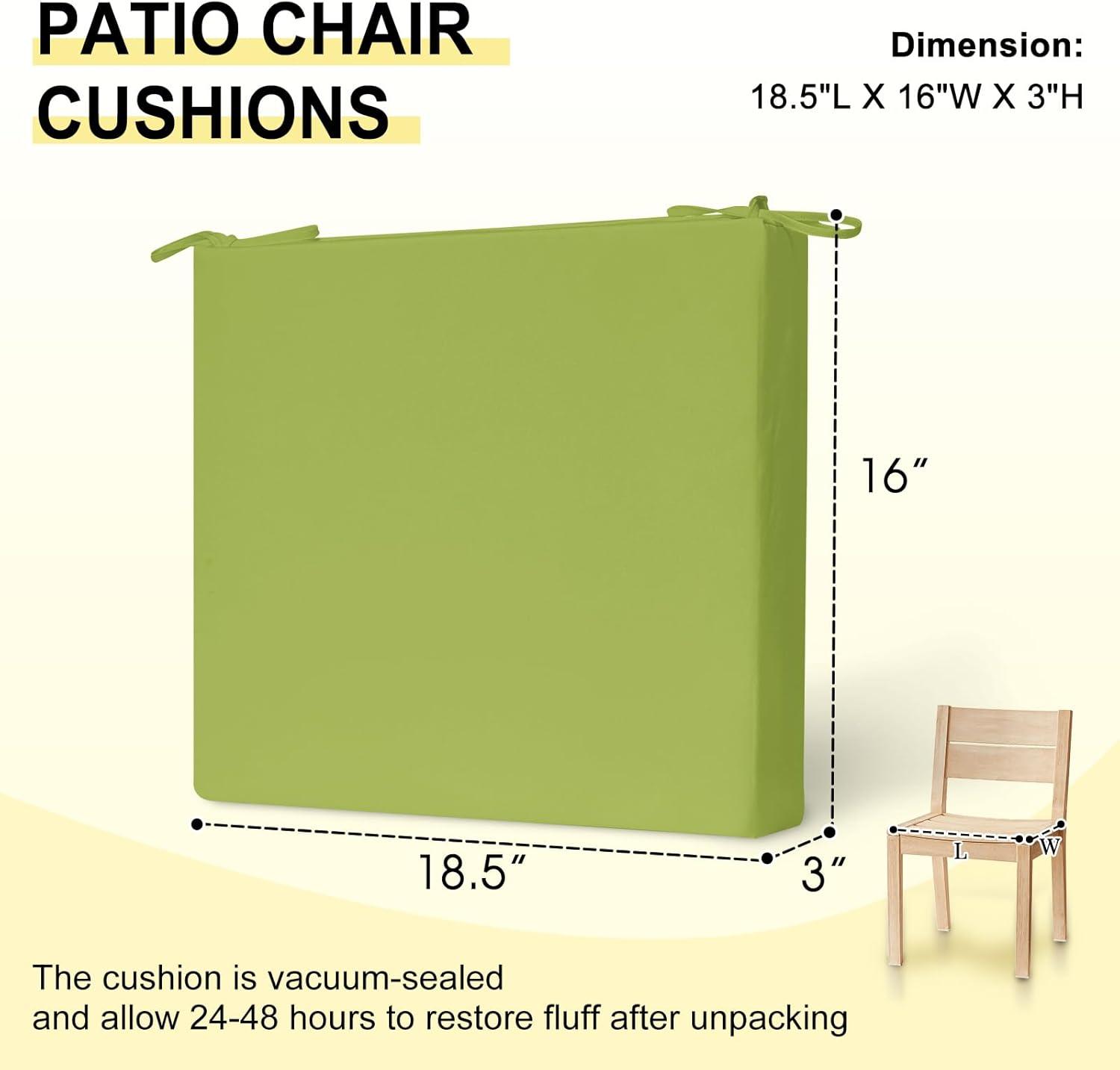 downluxe Outdoor Chair Cushions Set of 4 for Patio Furniture, Water-Resistant Square Corner Patio Chair Cushions with Ties, High Density Foam Outdoor Seat Cushion, 18.5" X 16" X 3", Black(Sage Green)