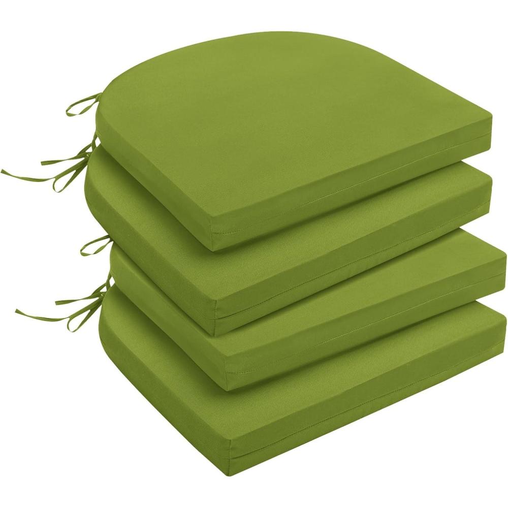 imagedownluxe Outdoor Chair Cushions Set of 4 for Patio Furniture WaterResistant Square Corner Patio Chair Cushions with Ties High Density Foam Outdoor Seat Cushion 185quot X 16quot X 3quot BlackSage Green