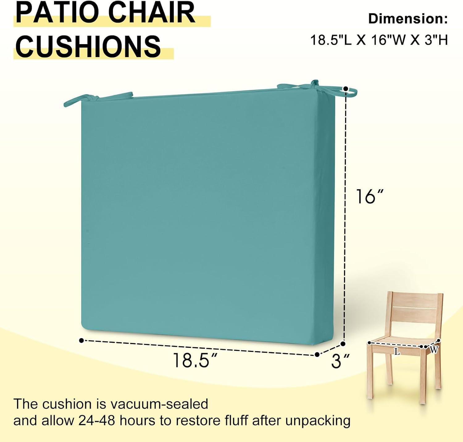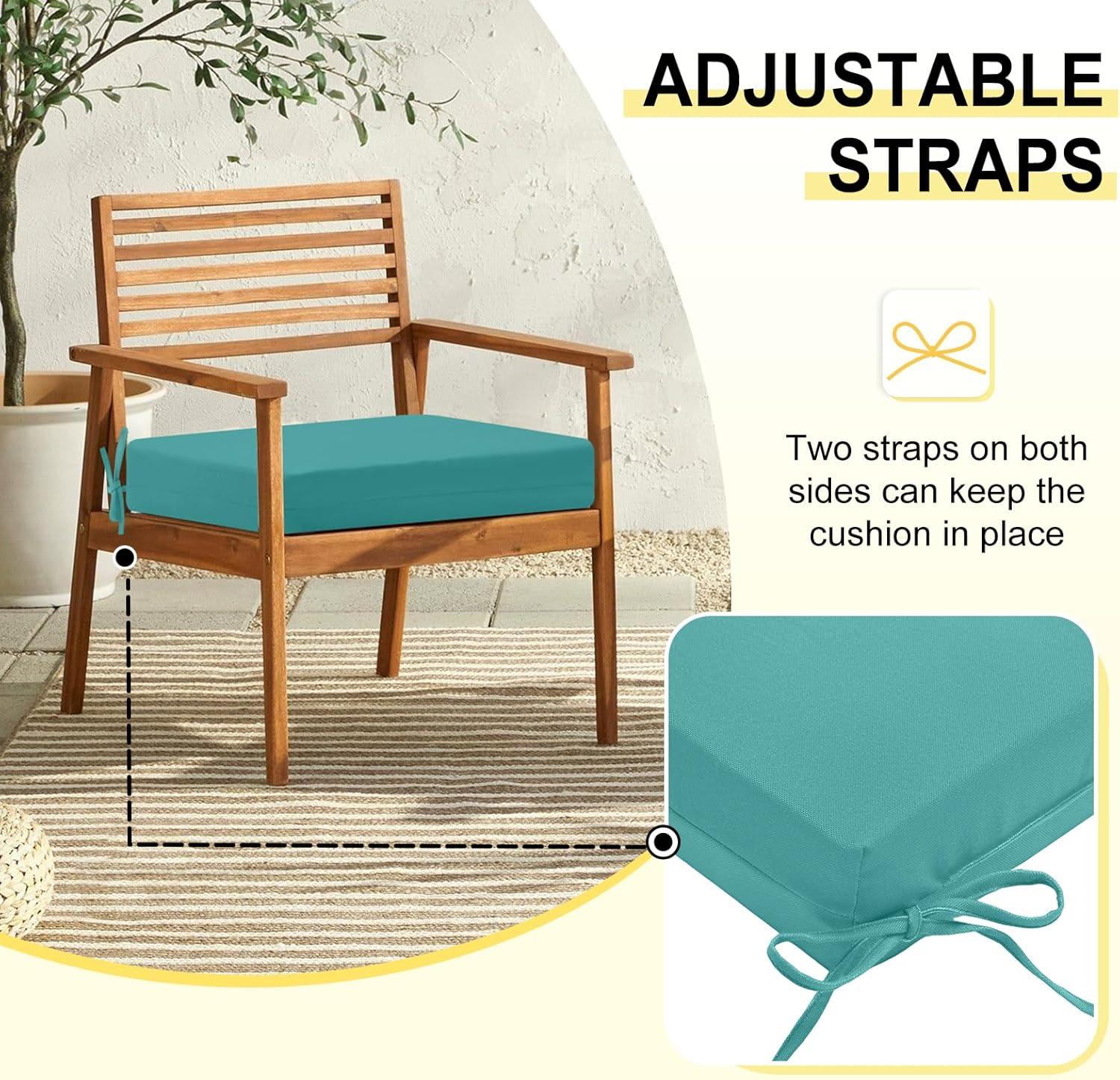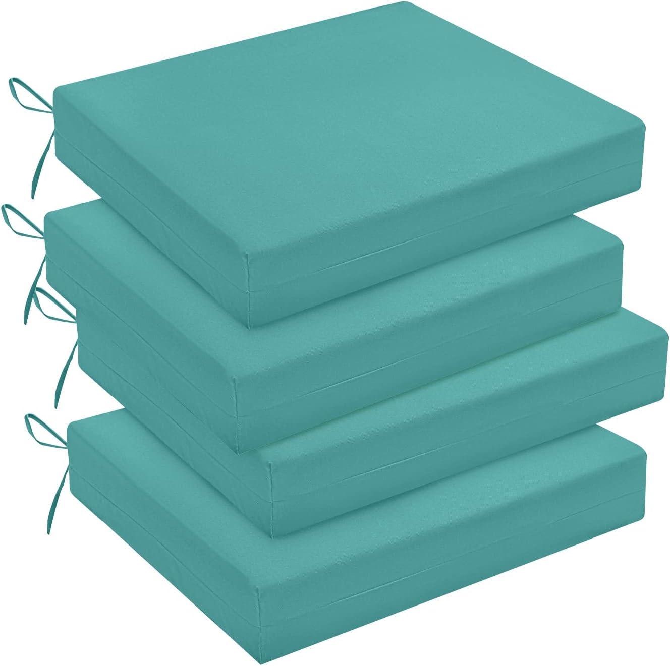 downluxe Outdoor Chair Cushions Set of 4 for Patio Furniture, Water-Resistant Square Corner Patio Chair Cushions with Ties, High Density Foam Outdoor Seat Cushion, 18.5" X 16" X 3", Black(Teal)