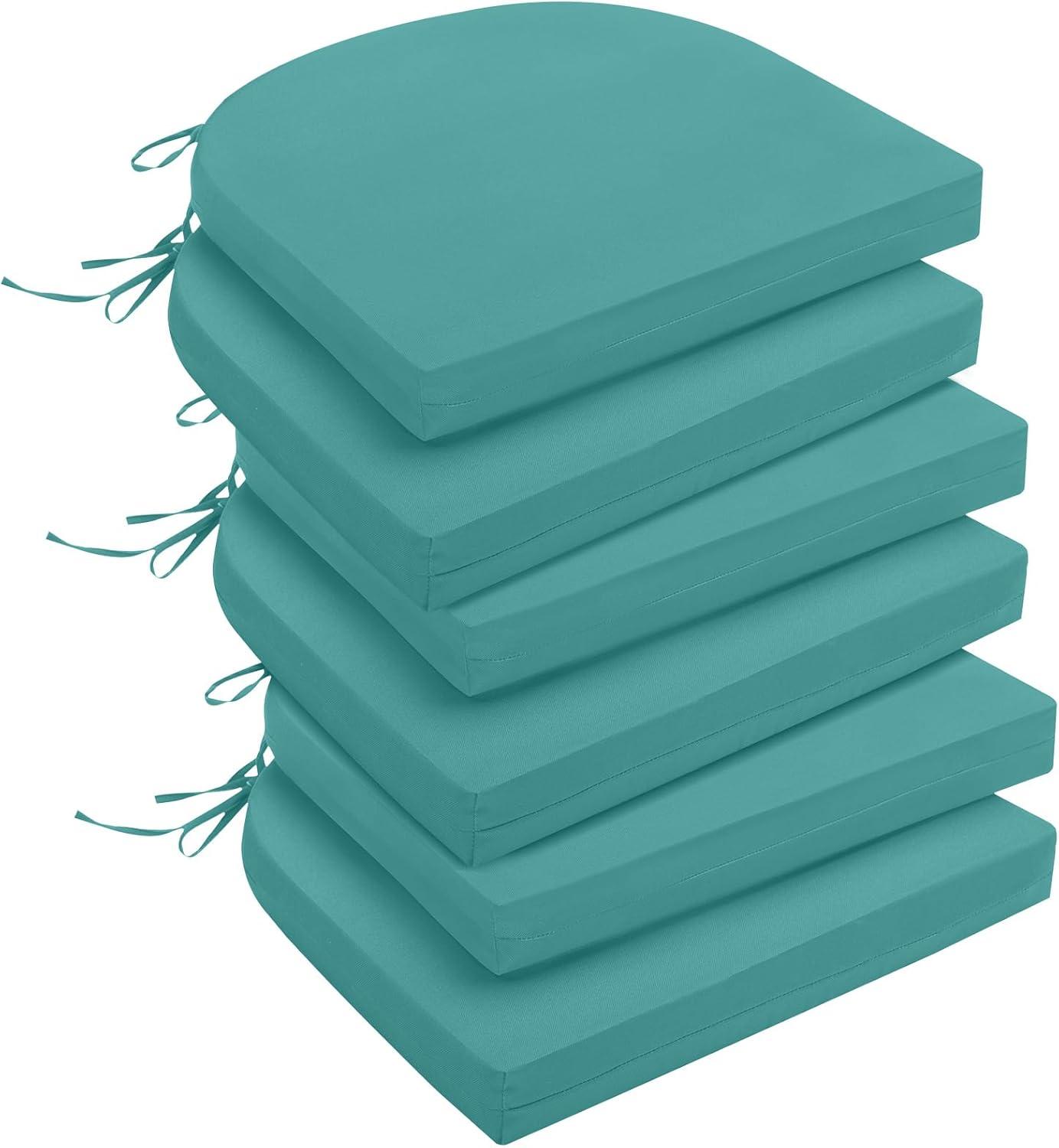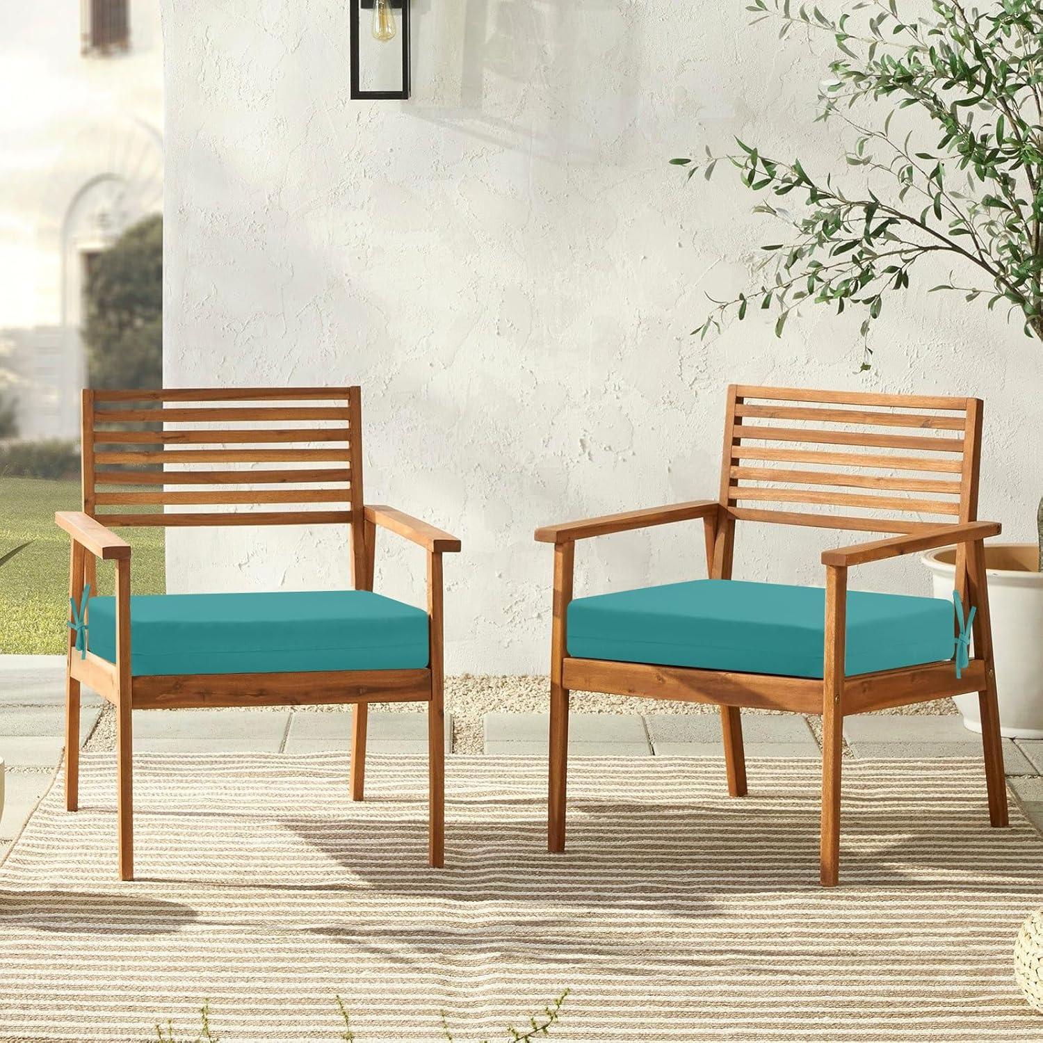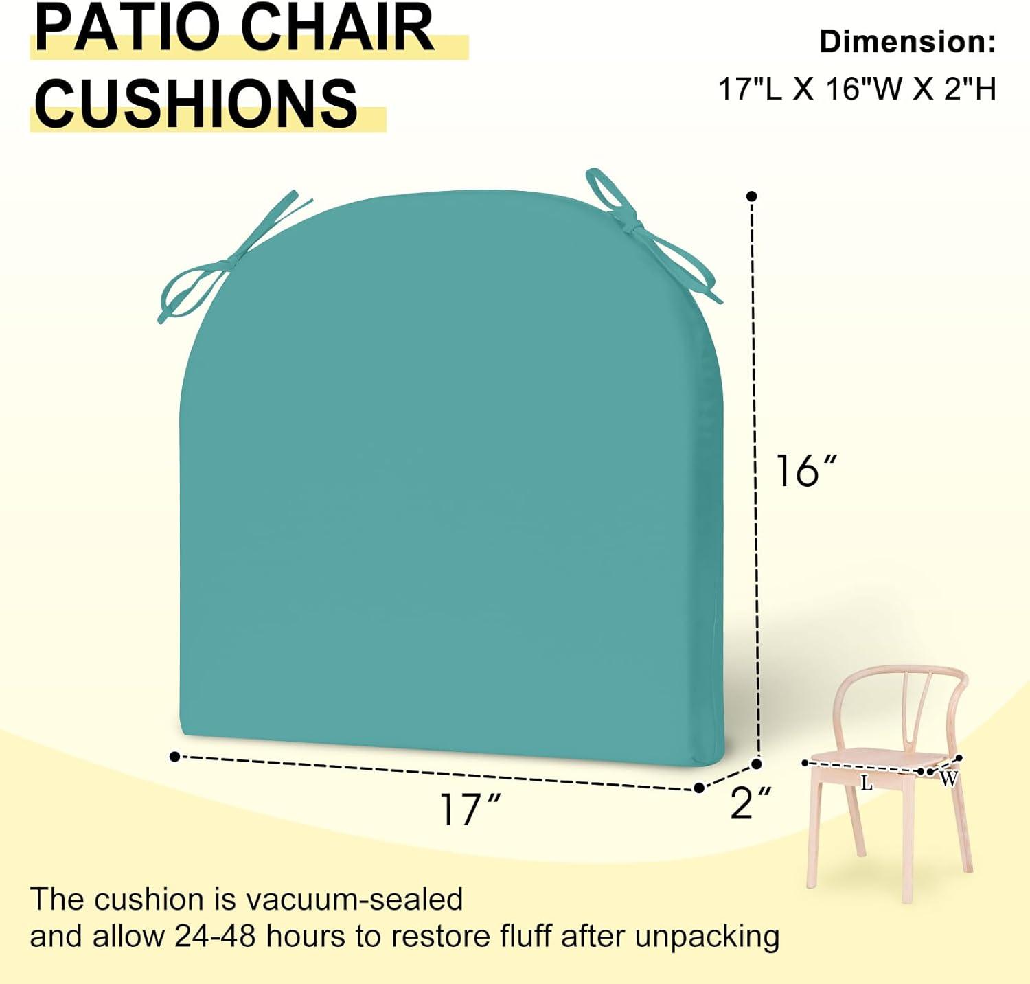 downluxe Outdoor Chair Cushions Set of 4 for Patio Furniture, Water-Resistant Square Corner Patio Chair Cushions with Ties, High Density Foam Outdoor Seat Cushion, 18.5" X 16" X 3", Black(Teal)