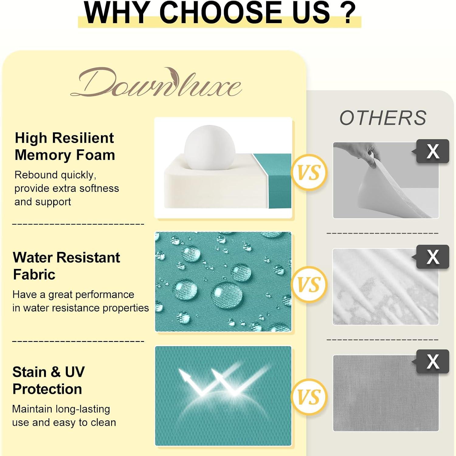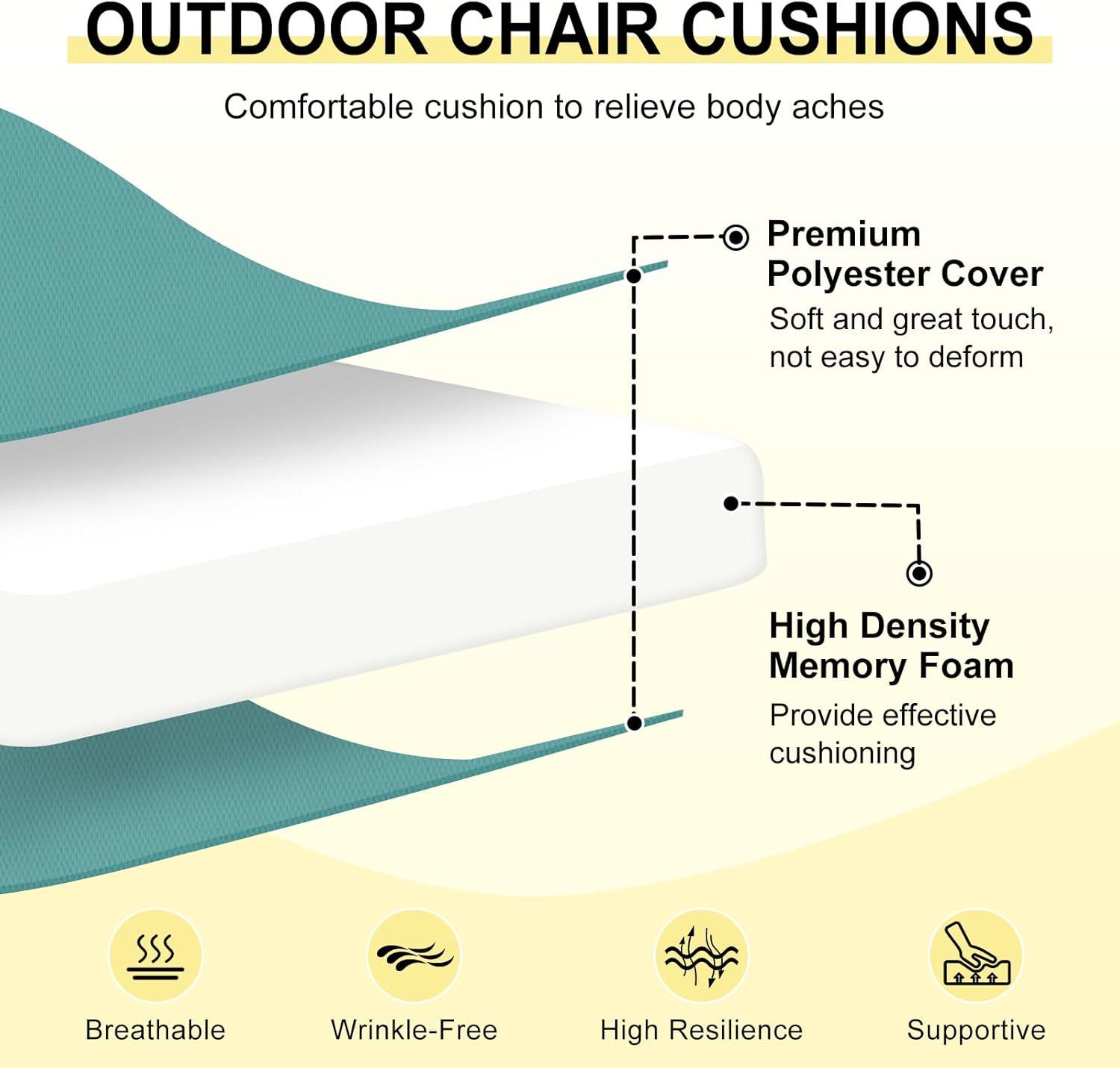 High-Density Foam: The patio furniture cushions are filled with 3 inches thick foam that is soft and supportive, providing effective cushioning and reducing pain in the lower back, tailbone and hips by evenly distributing body weight