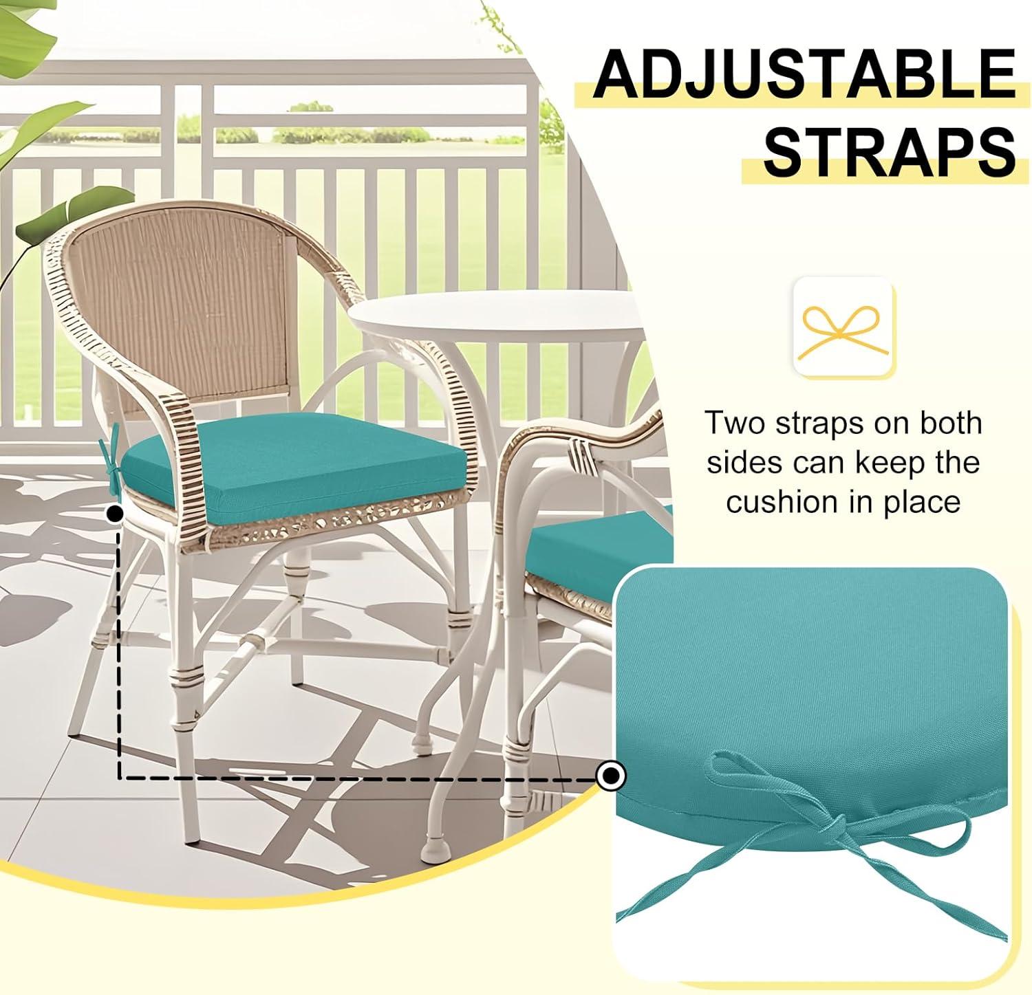 Two Adjustable Straps: There are two adjustable straps on each side of the cushions to keep them securely fastened to your outdoor chairs and prevent them from sliding easily. The exquisite strap design can provide you with convenience and practicality