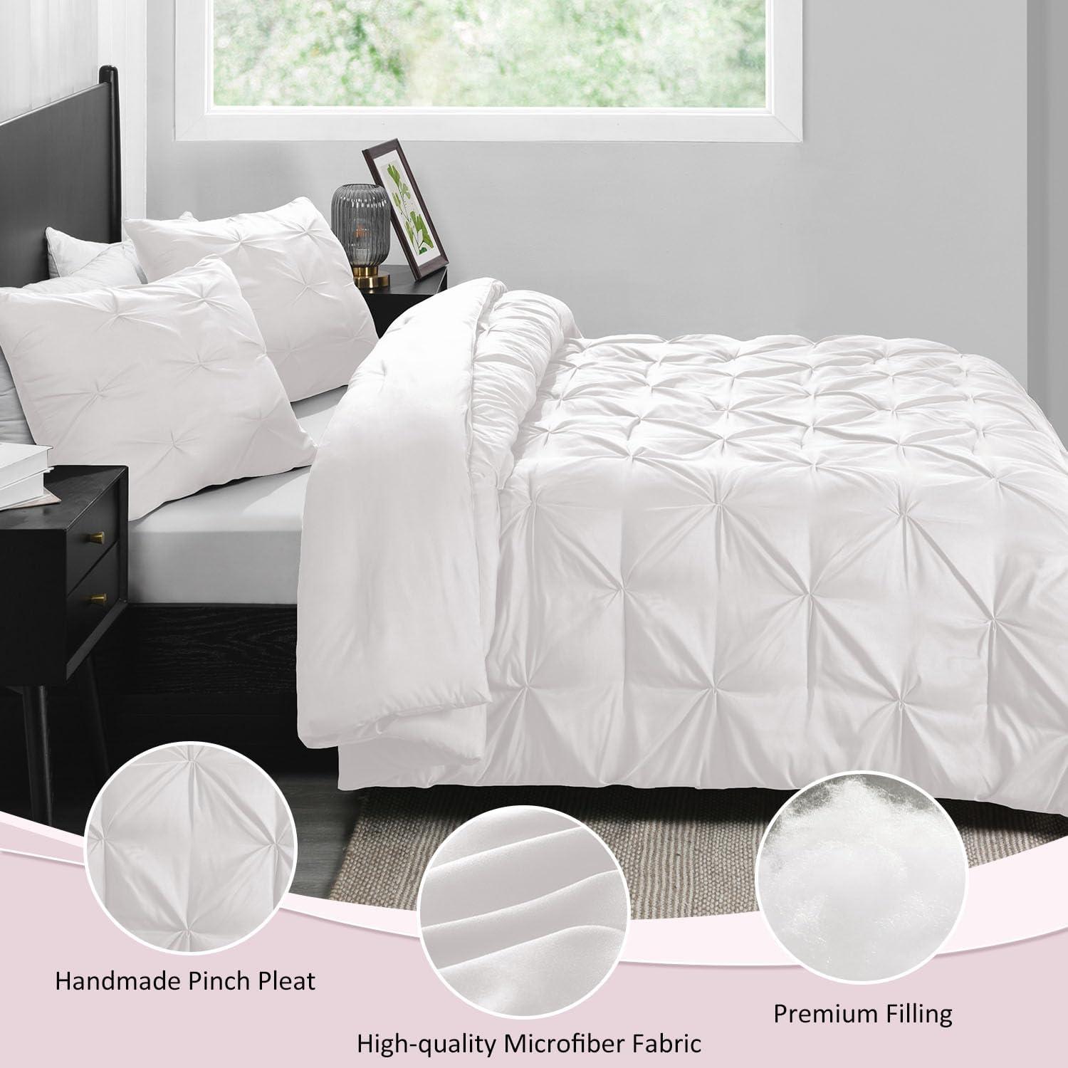 Soft & Comfortable: This pinch pleat comforter set is made of brushed microfiber, which extremely soft and cozy. It is filled with down alternative microfiber, the cloud-like soft bedding set let you enjoy your sound sleep all through the night
