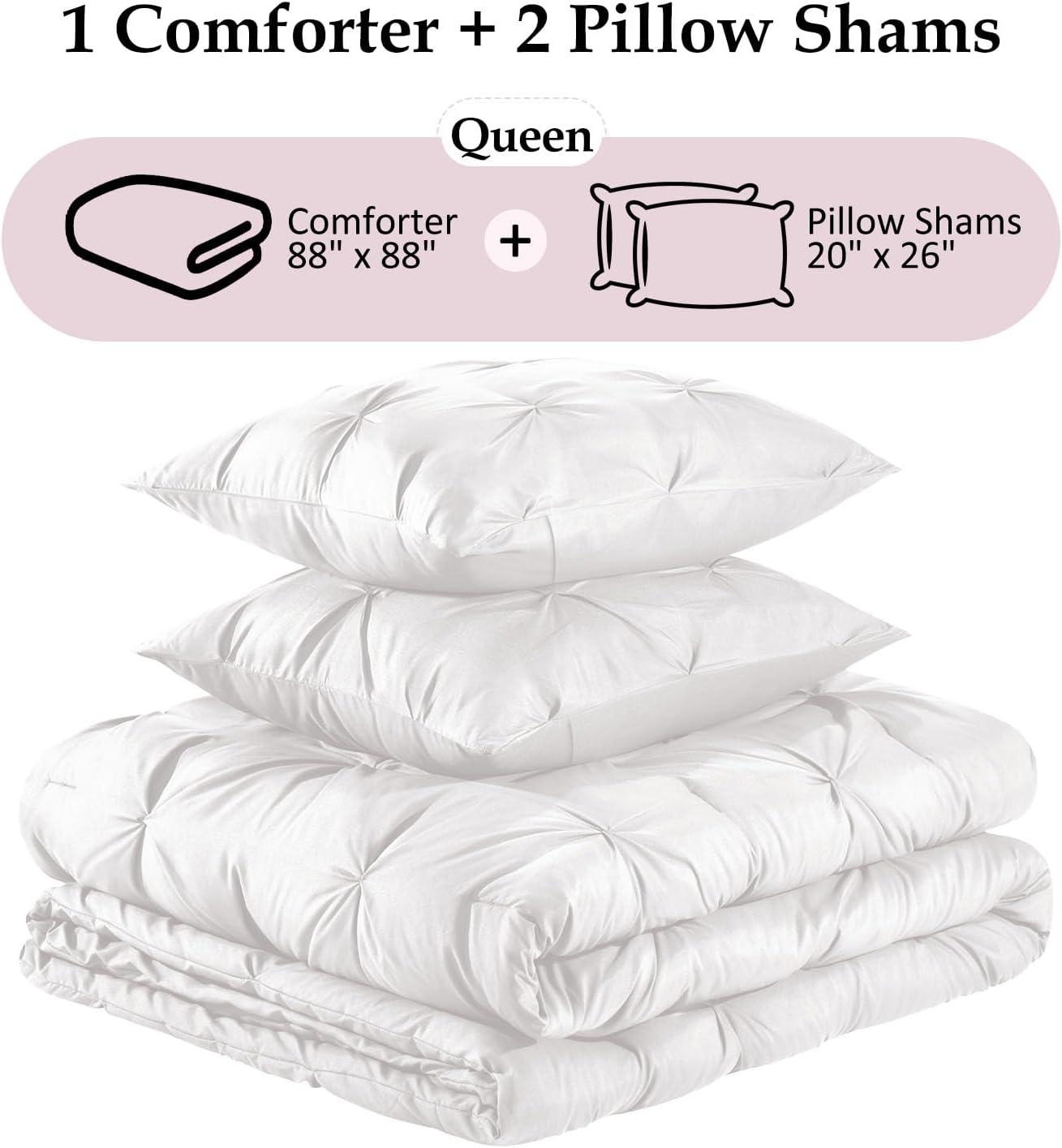 Package & Size: Bed comforter queen set 3-piece includes 1 pintuck bed comforter 88″x 88″ / 2 pillow shams 20″x 26″. This soft and cozy pinch pleat comforter bedding set is suitable for all seasons