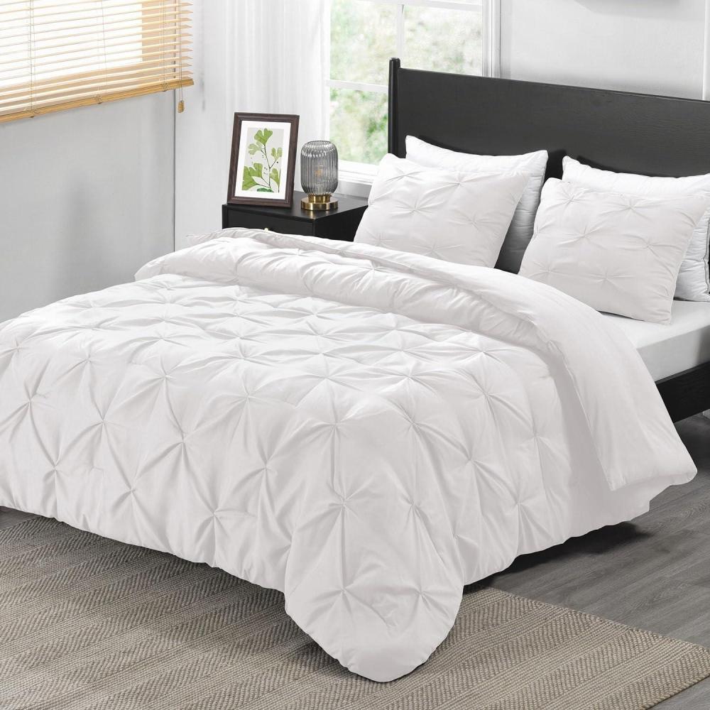 imagedownluxe Pintuck Queen Comforter Set with 2 Pillow Shams  3Piece  White Queen Bed Comforter Set for All Seasons Pinch Pleat Microfiber Down Alternative Bedding Comforter Sets