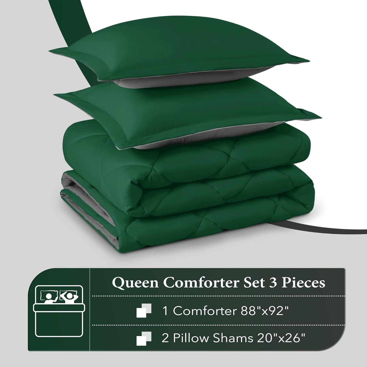 downluxe Queen Comforter Set - Charcoal and Grey Queen Comforter, Soft Bedding Sets for All Seasons -3 Pieces - 1 Comforter (88"x92") and 2 Pillow Shams(20"x26")(Blackish Green/Gray)