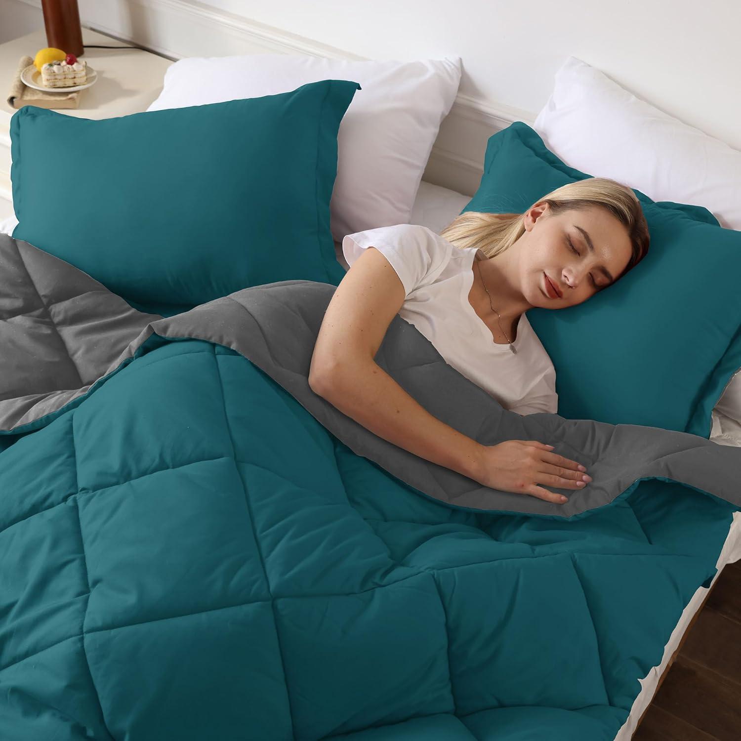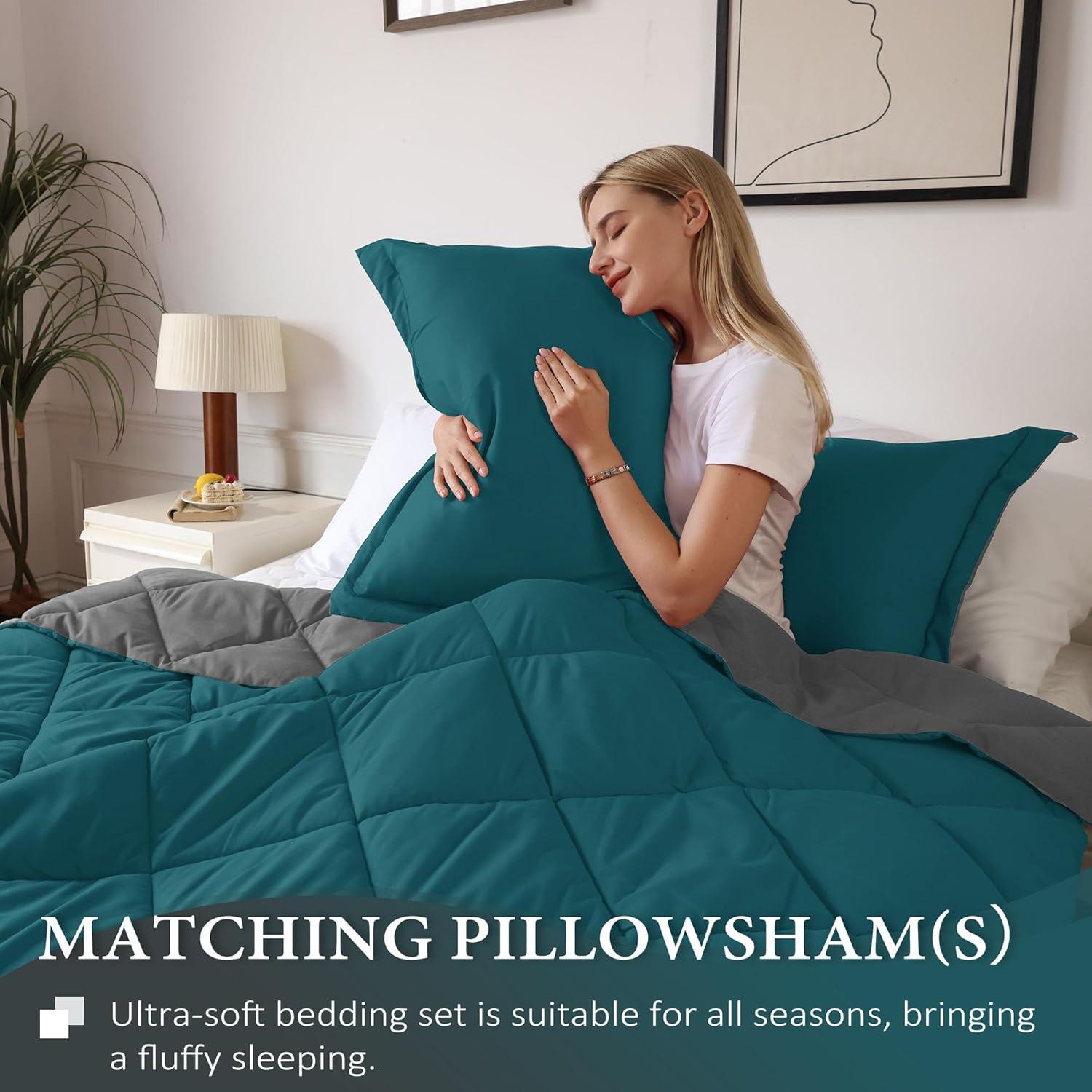 Soft & Comfortable: This reversible queen comforter set is made of brushed microfiber, which extremely soft and cozy. It is filled with down alternative microfiber,the cloud-like soft bedding set let you enjoy your sound sleep all through the night