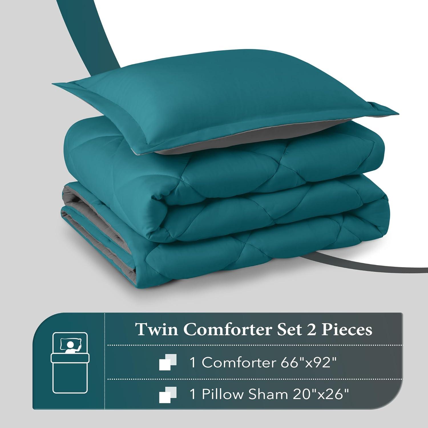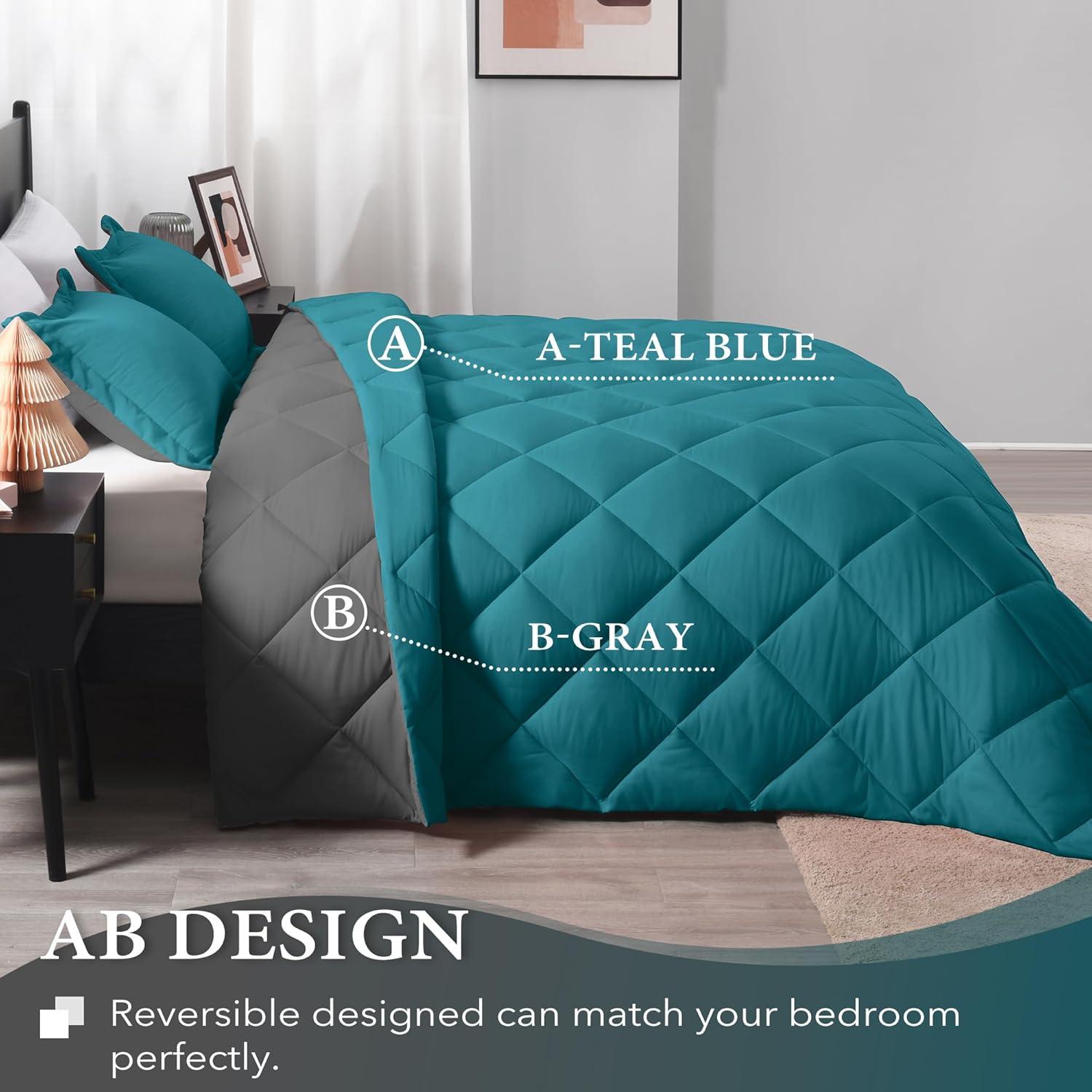 downluxe Queen Comforter Set - Charcoal and Grey Queen Comforter, Soft Bedding Sets for All Seasons -3 Pieces - 1 Comforter (88"x92") and 2 Pillow Shams(20"x26")(Ocean/Gray)
