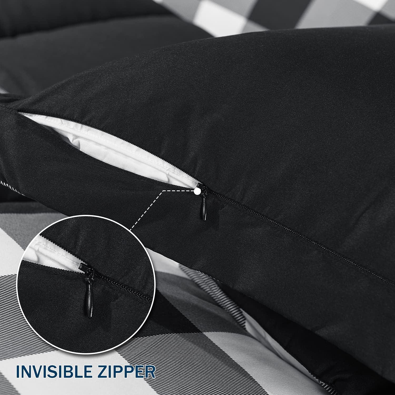 downluxe Queen Comforter Set - Charcoal and Grey Queen Comforter, Soft Bedding Sets for All Seasons -3 Pieces - 1 Comforter (88"x92") and 2 Pillow Shams(20"x26")(Plaid Black/White)
