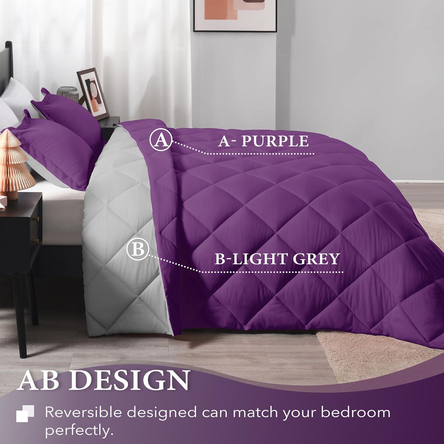 downluxe Queen Comforter Set - Charcoal and Grey Queen Comforter, Soft Bedding Sets for All Seasons -3 Pieces - 1 Comforter (88"x92") and 2 Pillow Shams(20"x26")(Purple/Grey)