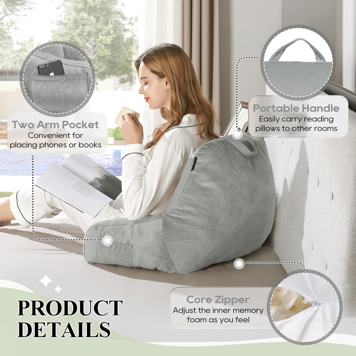 VERSATILE USE: Whether you're reading, watching TV, curling up on the couch or any form of bed rest, our reading pillow can help you enjoy life. Portable carry handle makes it easy to take the pillow to another room for use
