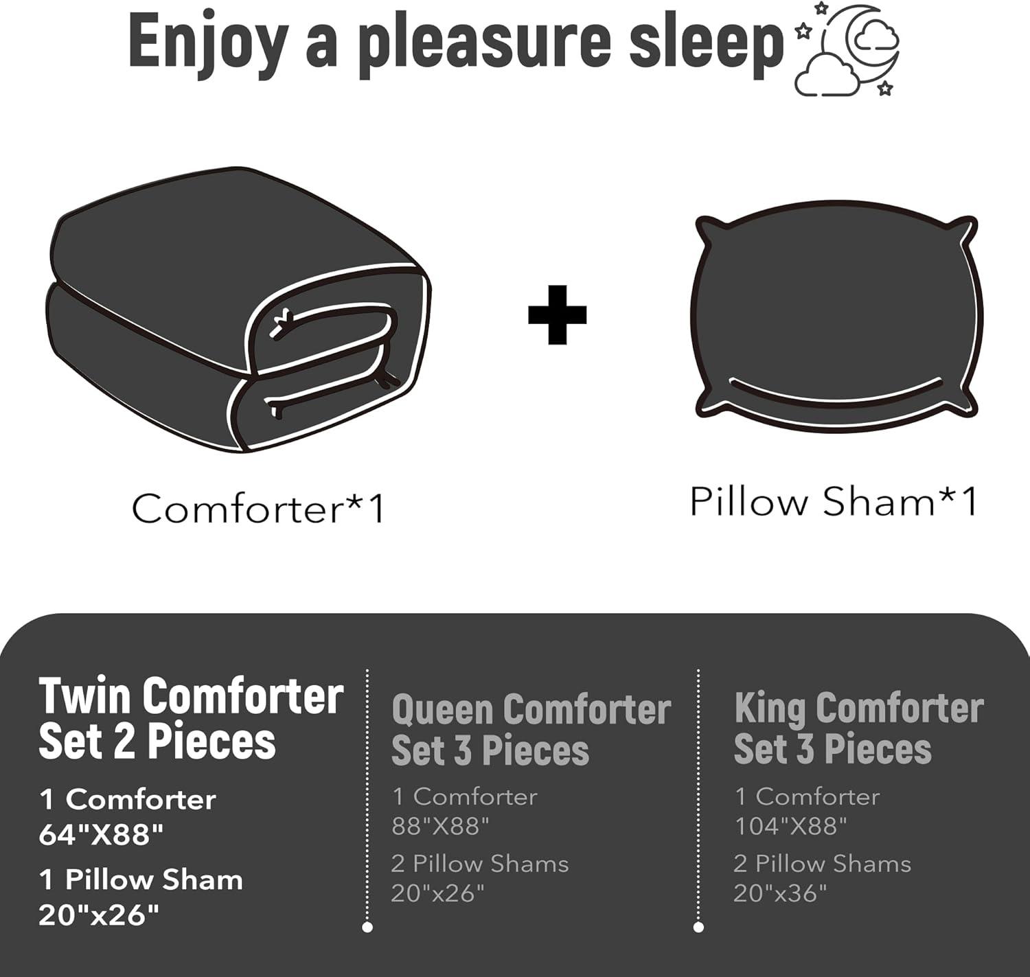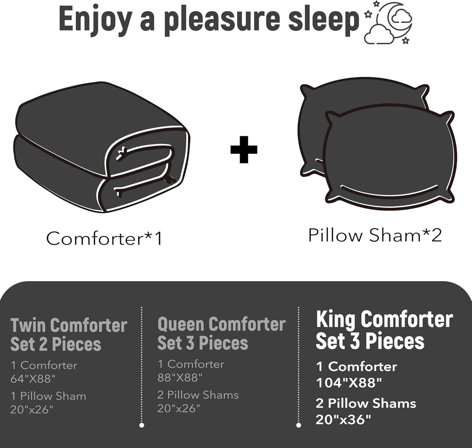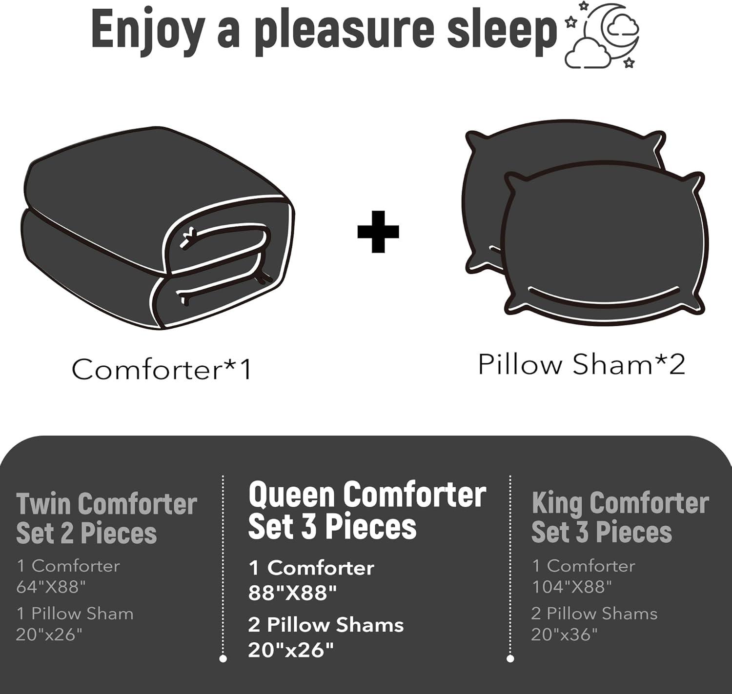 What's Included: Queen size comforter sets 3-piece include 1 sherpa comforter 88″x 88″ / 2 pillow shams 20″x 26″. We sincerely suggest that you can flap comforter gently and expose it to the sunlight for a few hours to fluffy up it