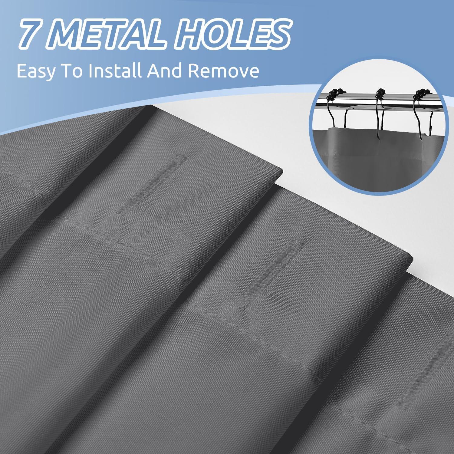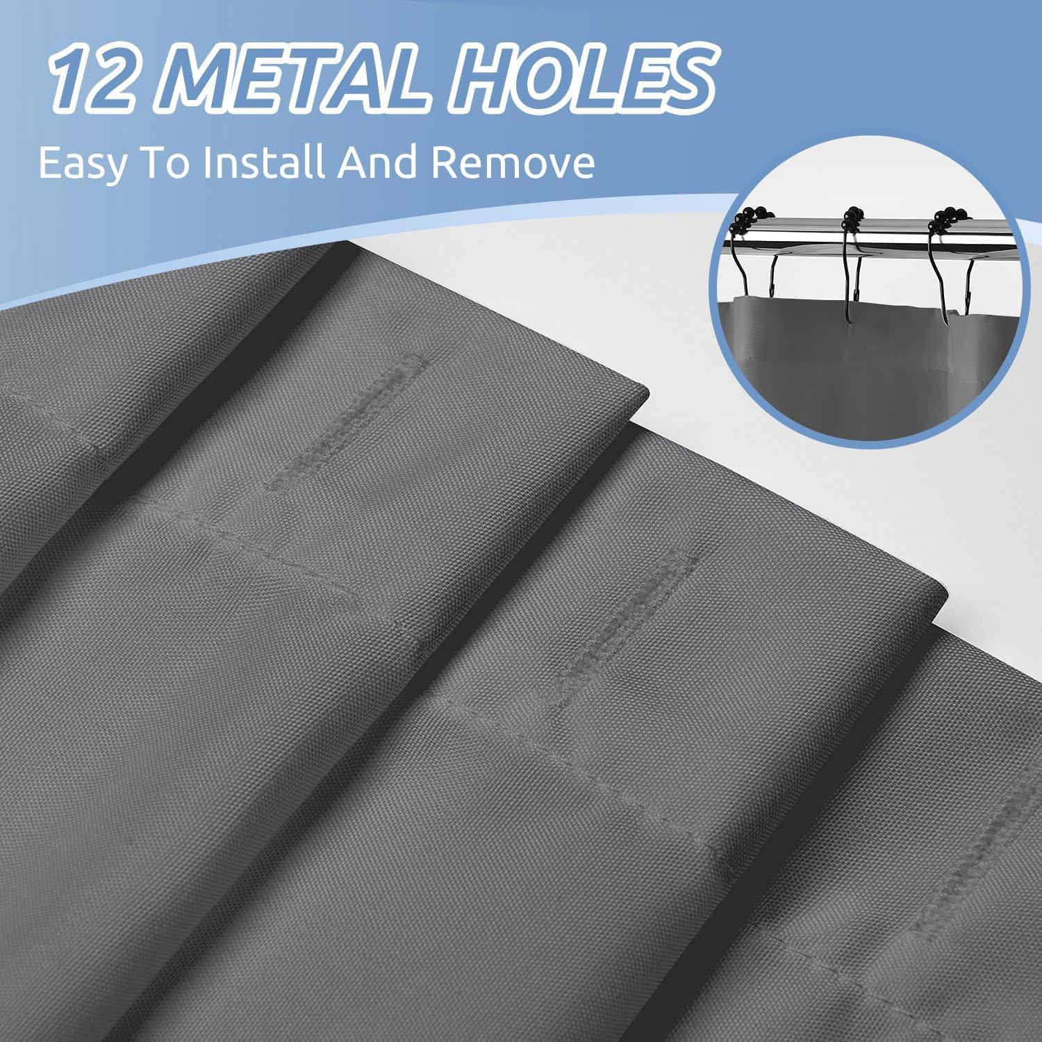 For Long-lasting Use: Reinforced top header with 12 metal holes can make this fabric shower curtain easy to hang and hard to tear