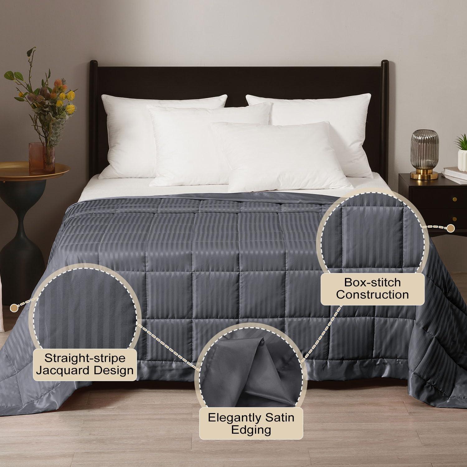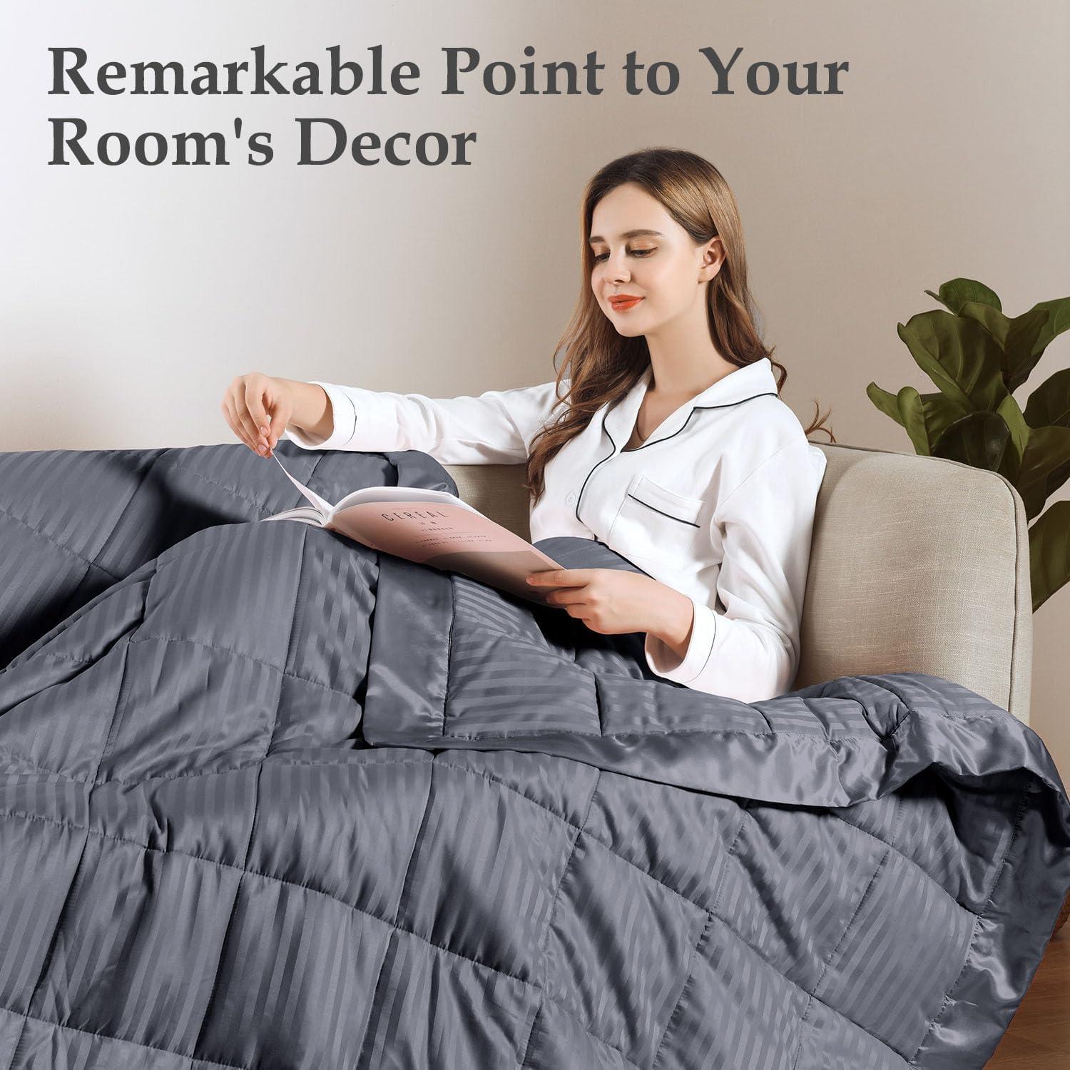 EXQUISITE PATTERN: It adopts exquisite straight stripe jacquard design craftsmanship with 3 inch satin binding. Breathe new life into your room while keep you comfort with an amazing weighted blanket