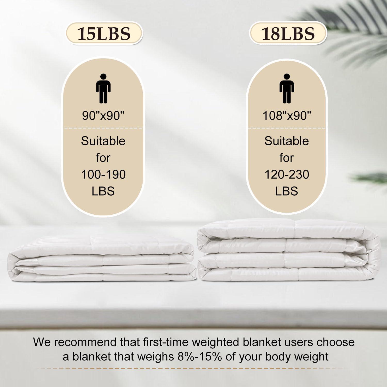 WEIGHT AND SIZE: King size weight blanket measures 108 x 90 inch, the total weight of the blanket is 18 pounds. suitable for a wide range of bed types,which is a good choice for you