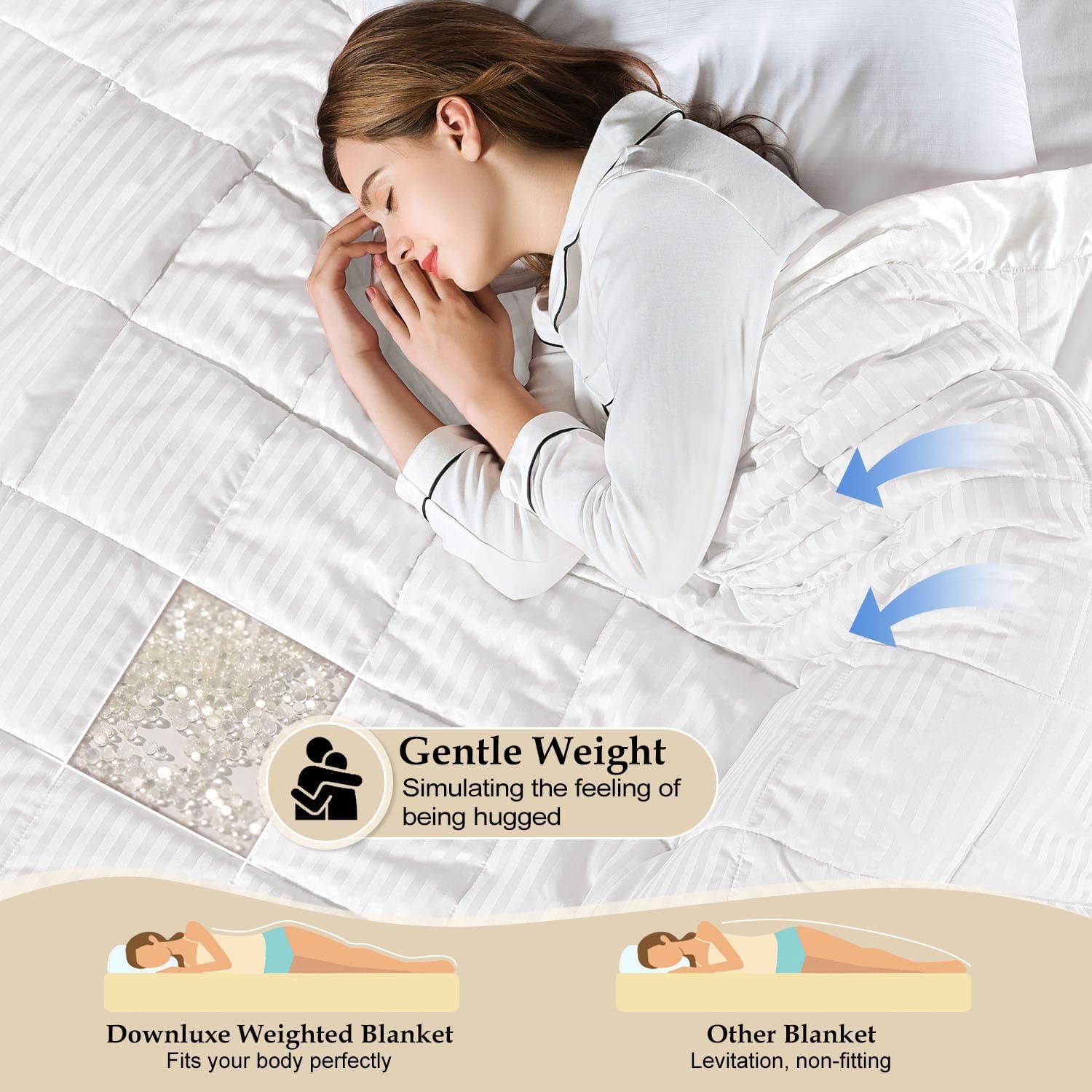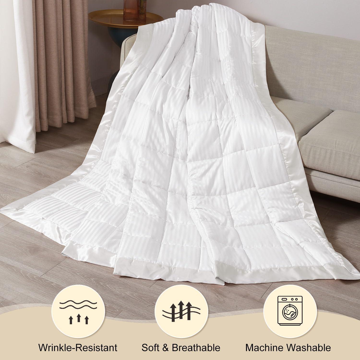 EXQUISITE PATTERN: It adopts exquisite straight stripe jacquard design craftsmanship with 3 inch satin binding. Breathe new life into your room while keep you comfort with an amazing weighted blanket